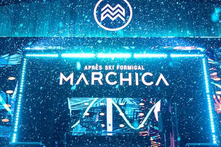 Podemos decir que Marchica apres ski fue pionero en traer la verdadera cultura del festejo alpino a los Pirineos. A partir de las tres de la tarde, cuando termina la última bajada, miles de personas se congregan en torno a su icónica barra circular para brindar bajo el sol.